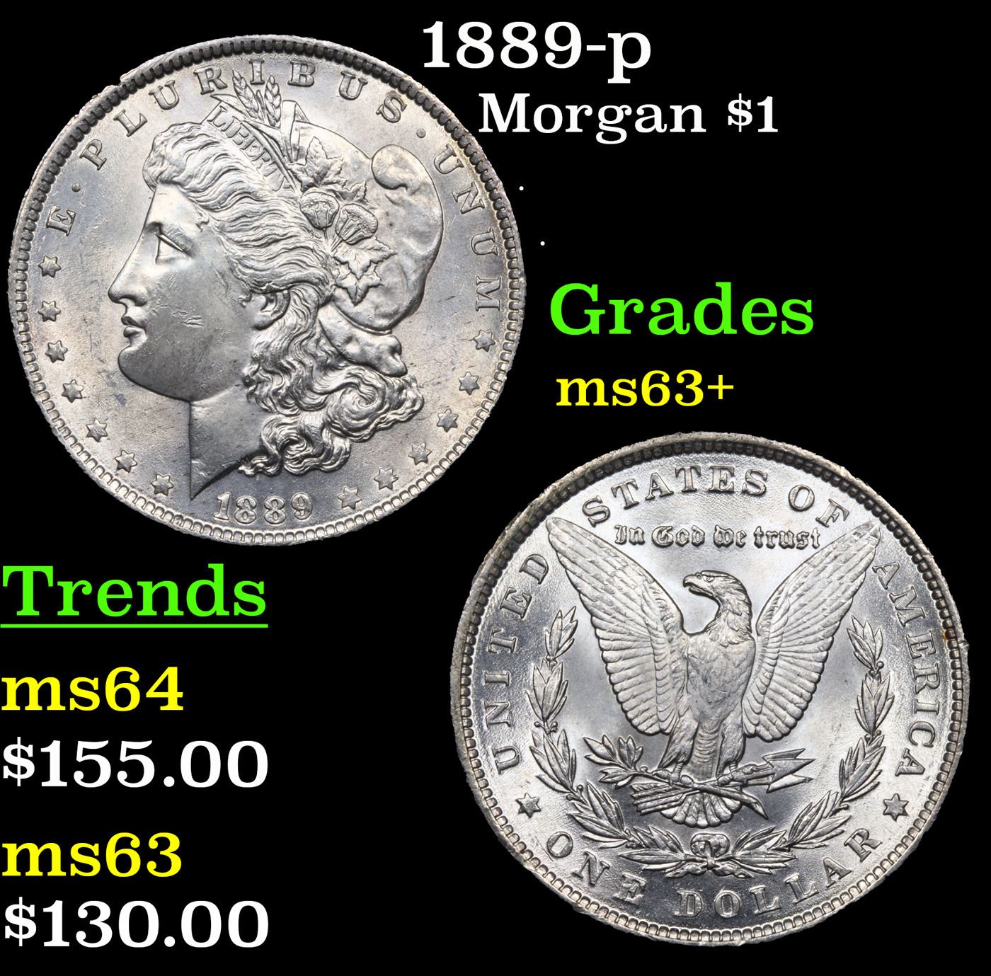 1889-p Morgan Dollar $1 Grades Select+ Unc.