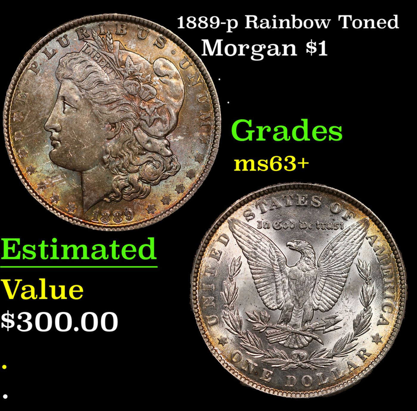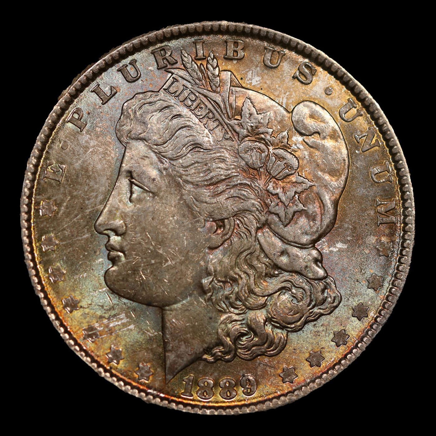 1889-p Rainbow Toned Morgan Dollar $1 Grades Select+ Unc.
