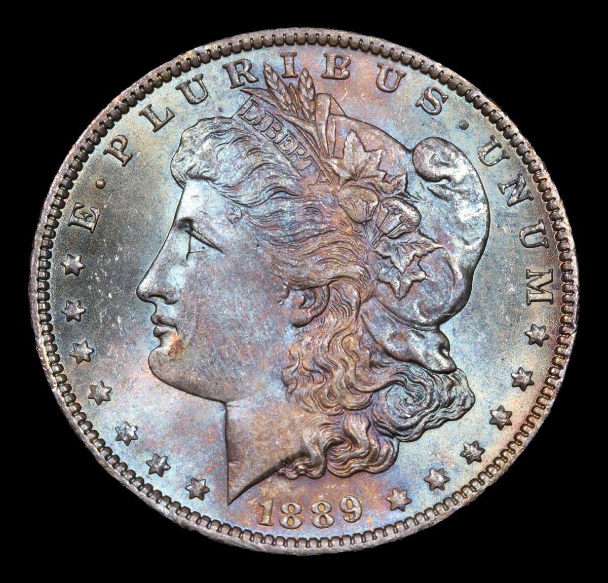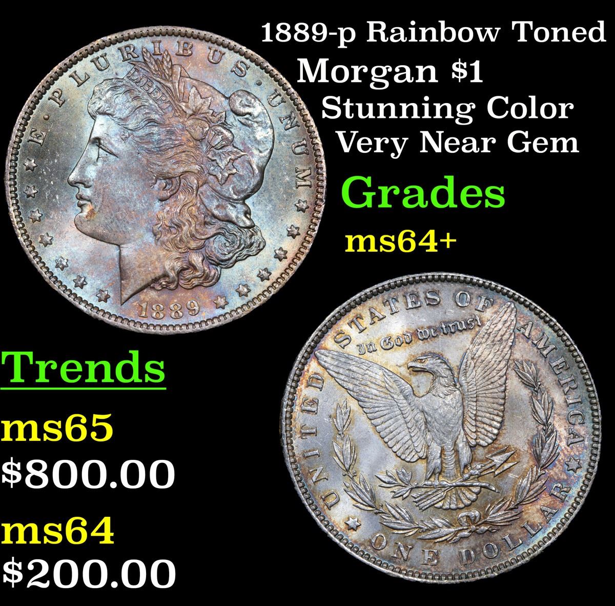 1889-p Rainbow Toned Stunning Color Very Near Gem Morgan Dollar $1 Grades Choice+ Unc.