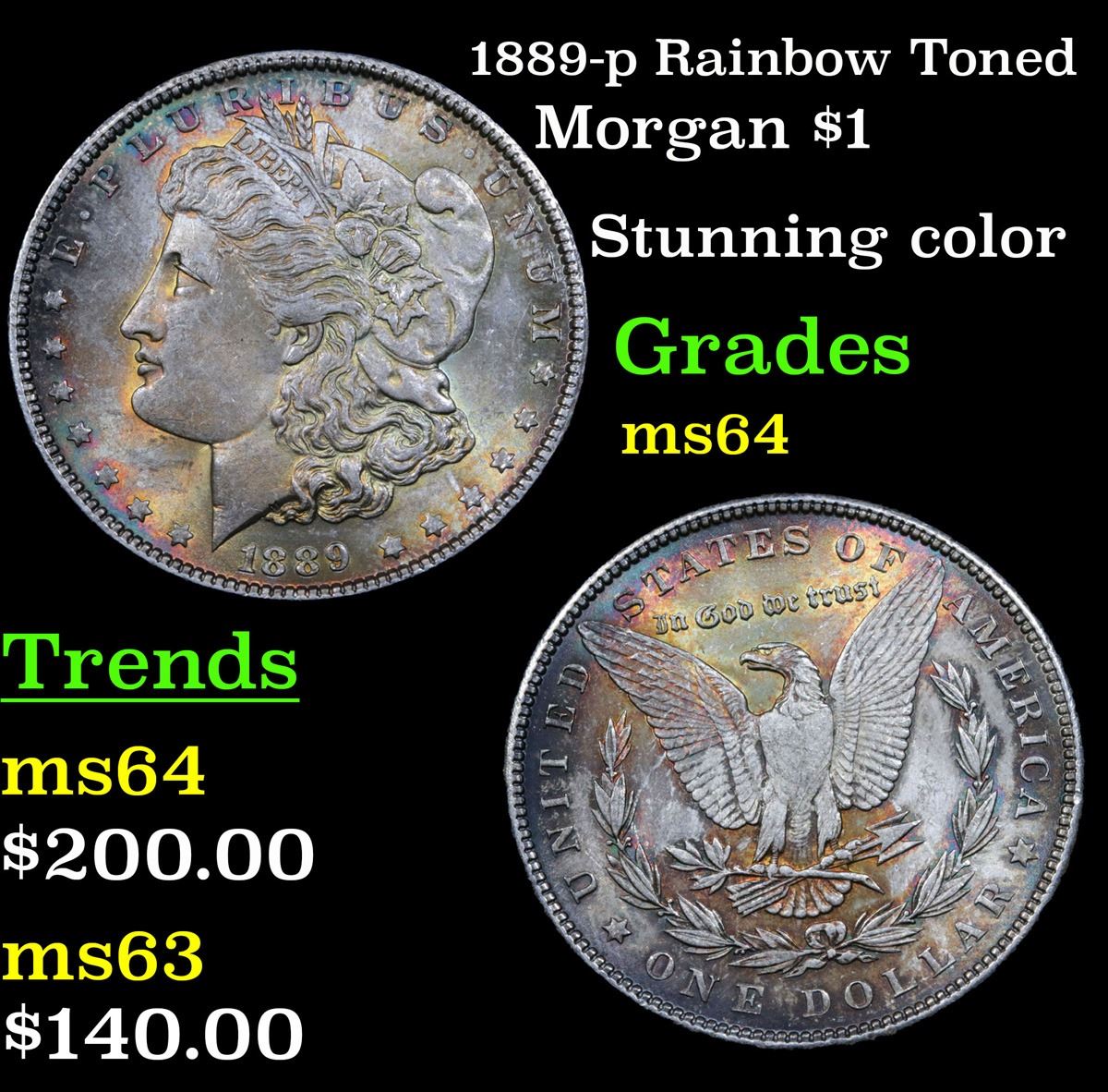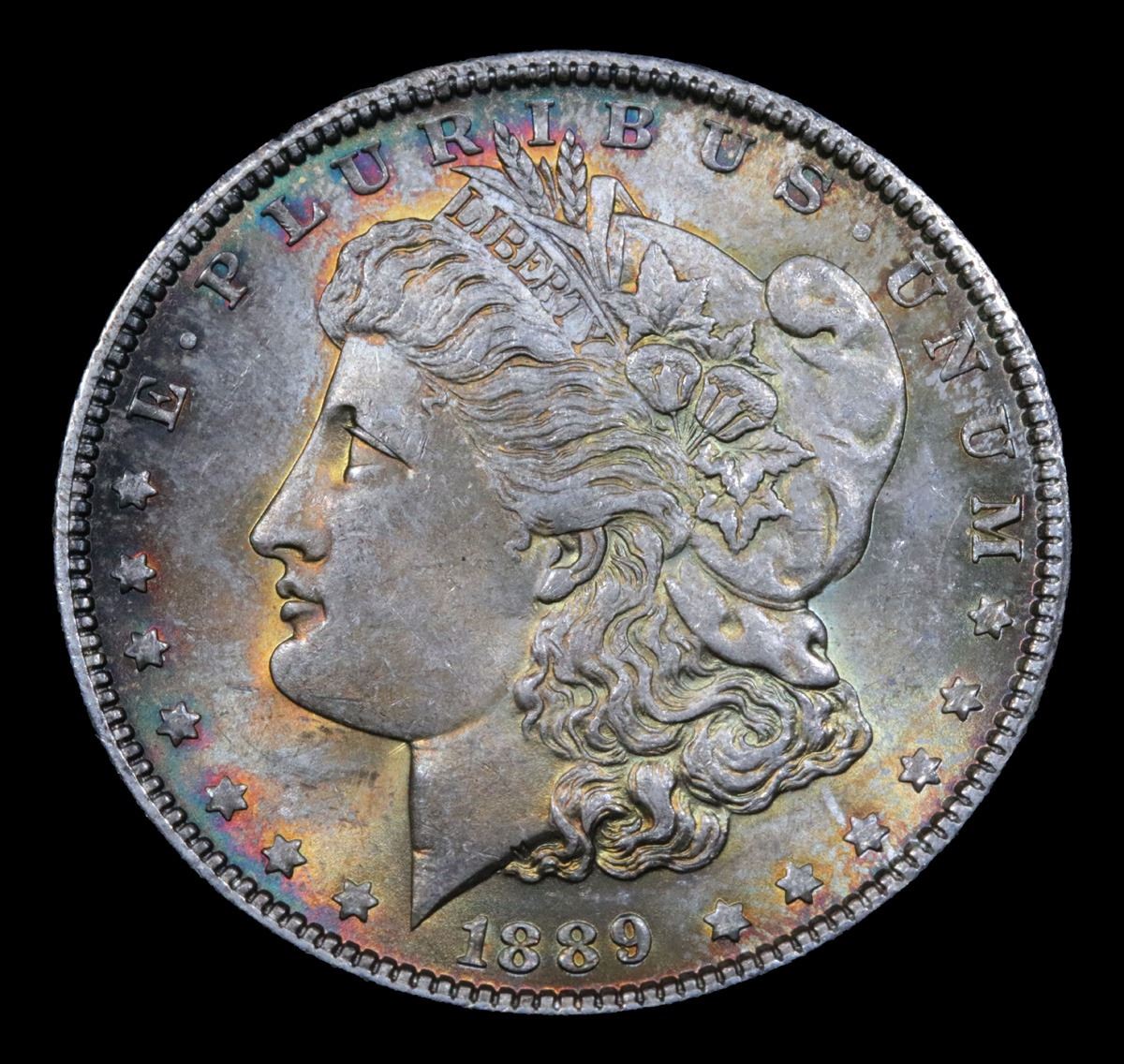 1889-p Rainbow Toned Morgan Dollar $1 Grades Choice Unc.