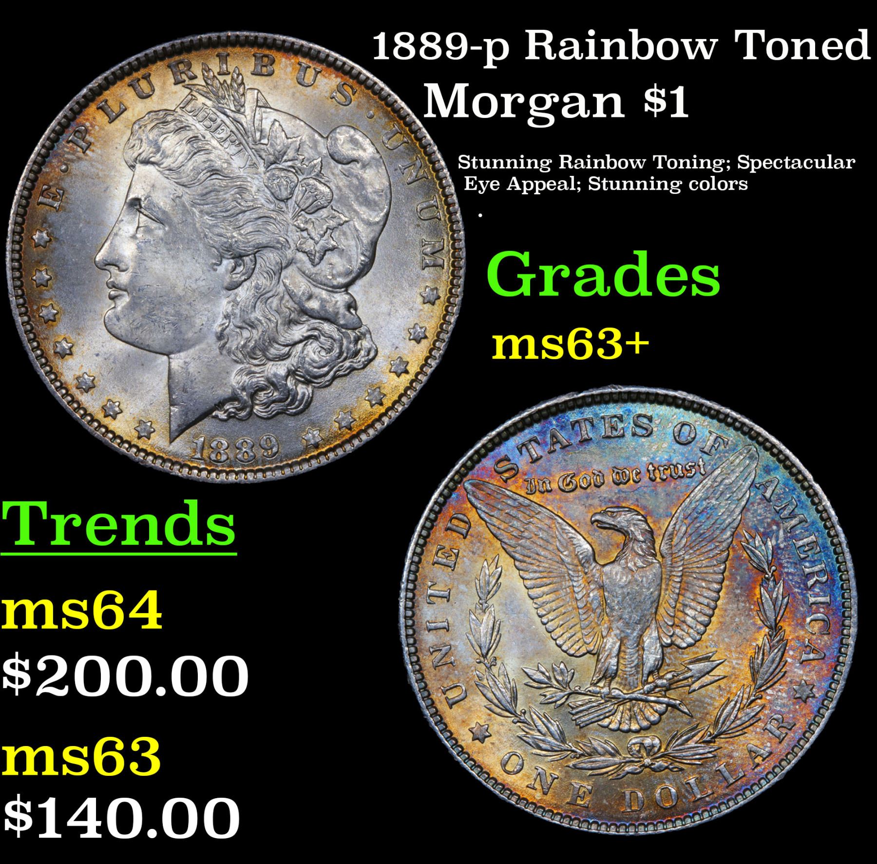 1889-p Rainbow Toned Morgan Dollar $1 Grades Select+ Unc. A Corey's Pick