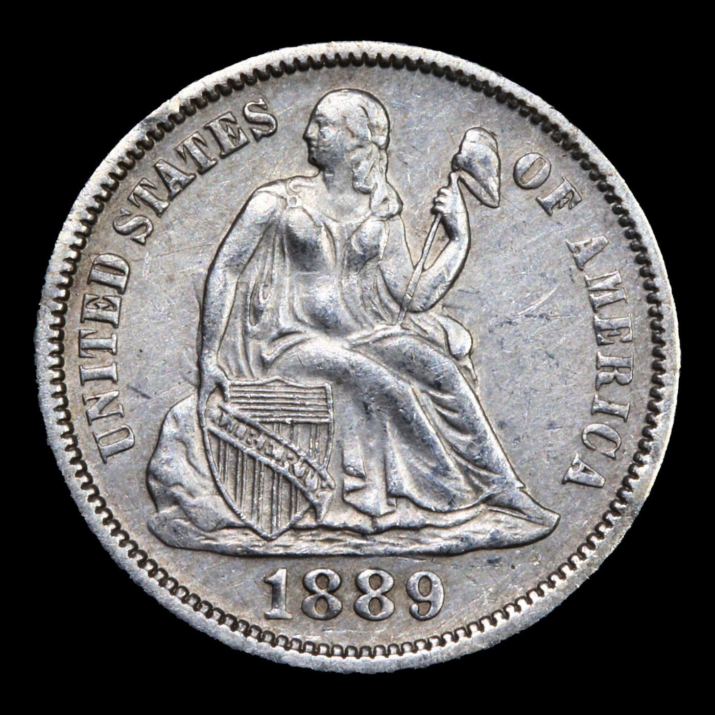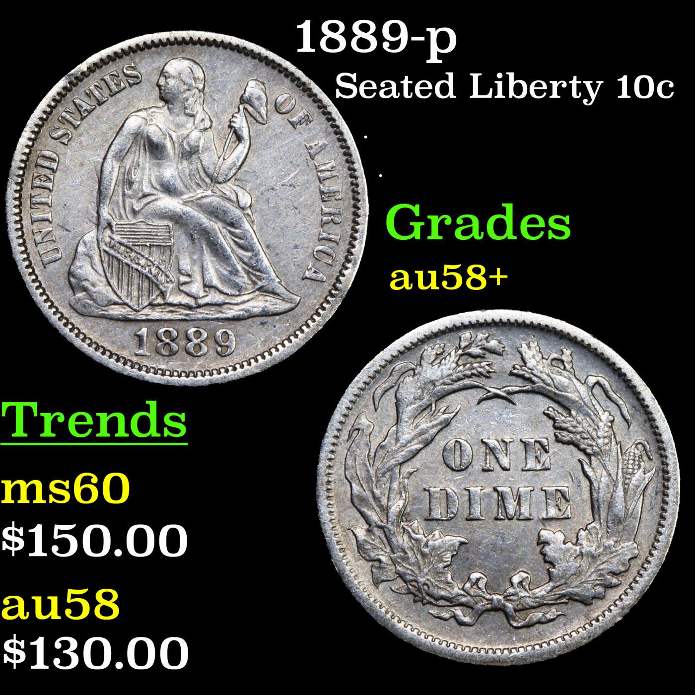 1889-p Seated Liberty Dime 10c Grades Choice AU/BU Slider+.