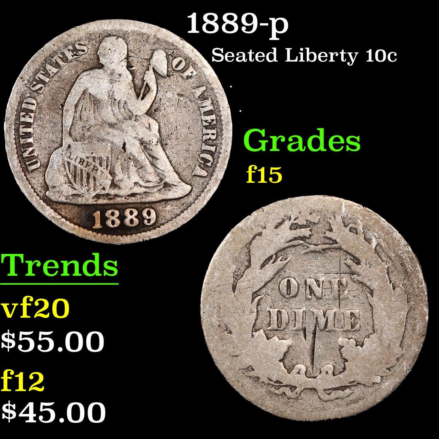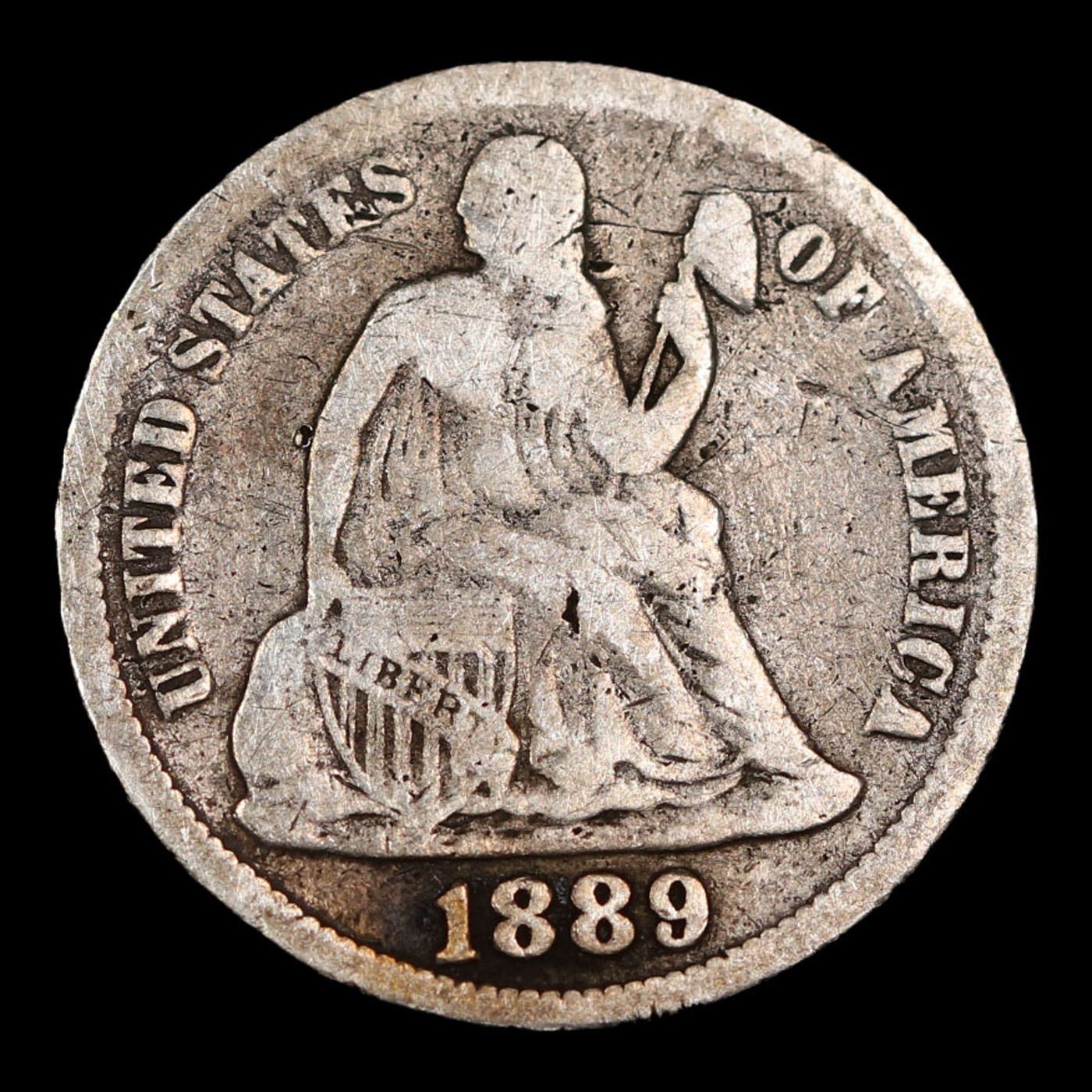 1889-p Seated Liberty Dime 10c Grades f+.
