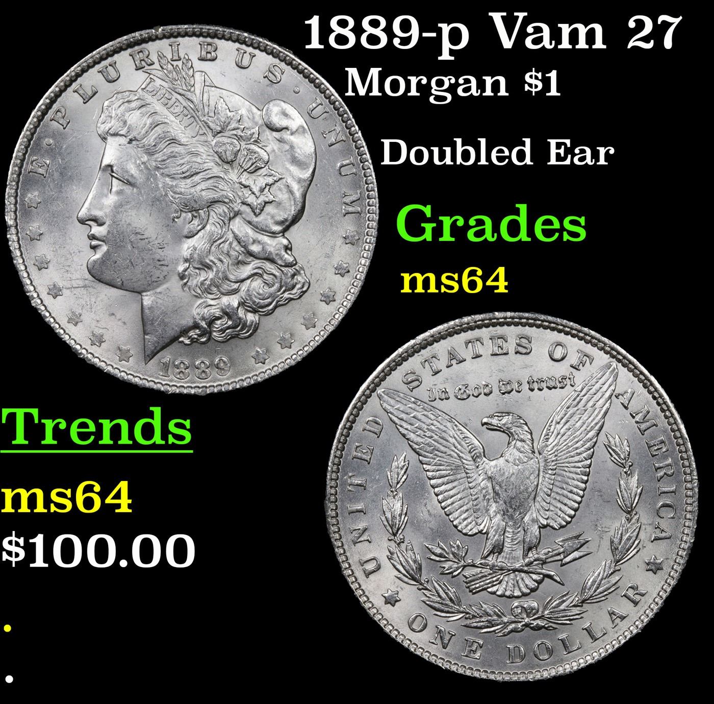 1889-p Vam 27 Morgan Dollar $1 Grades Choice Unc.