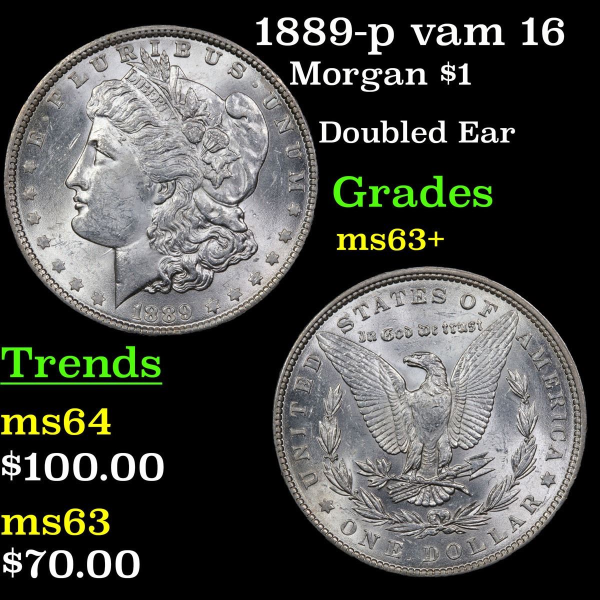 1889-p vam 16 Morgan Dollar $1 Grades Select+ Unc.