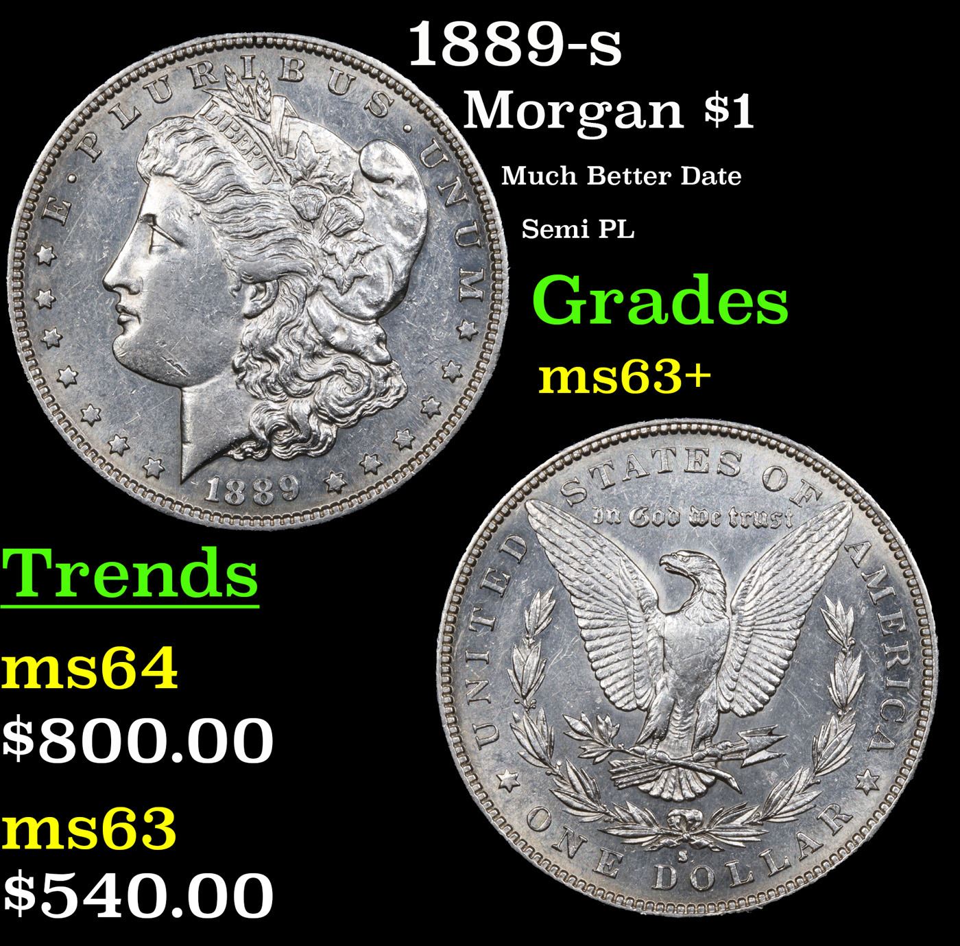 1889-s Morgan Dollar $1 Grades Select+ Unc.