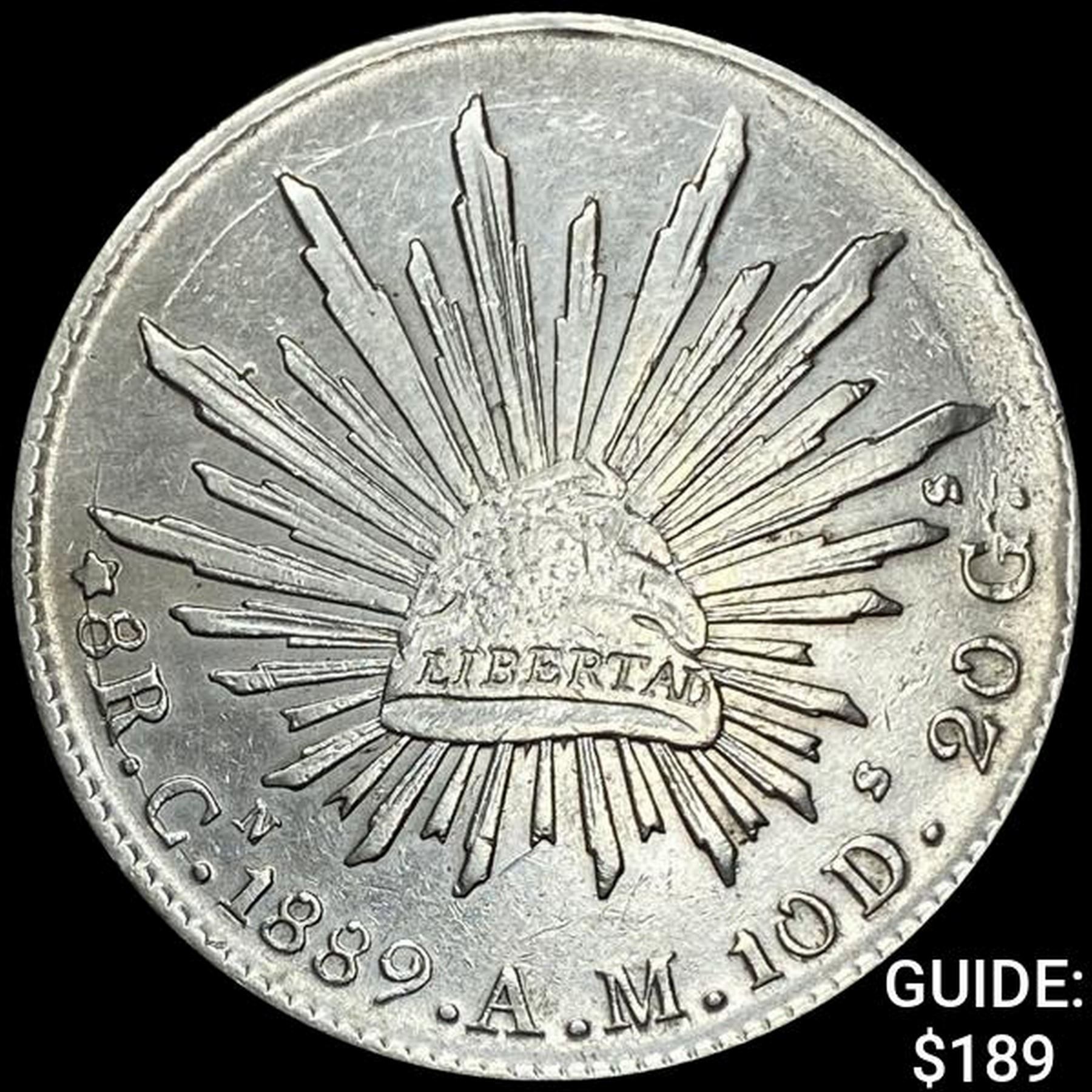 1889Cn AM Mexico Silver 8 Reales Cap&Ray NEARLY UNCIRCULATED