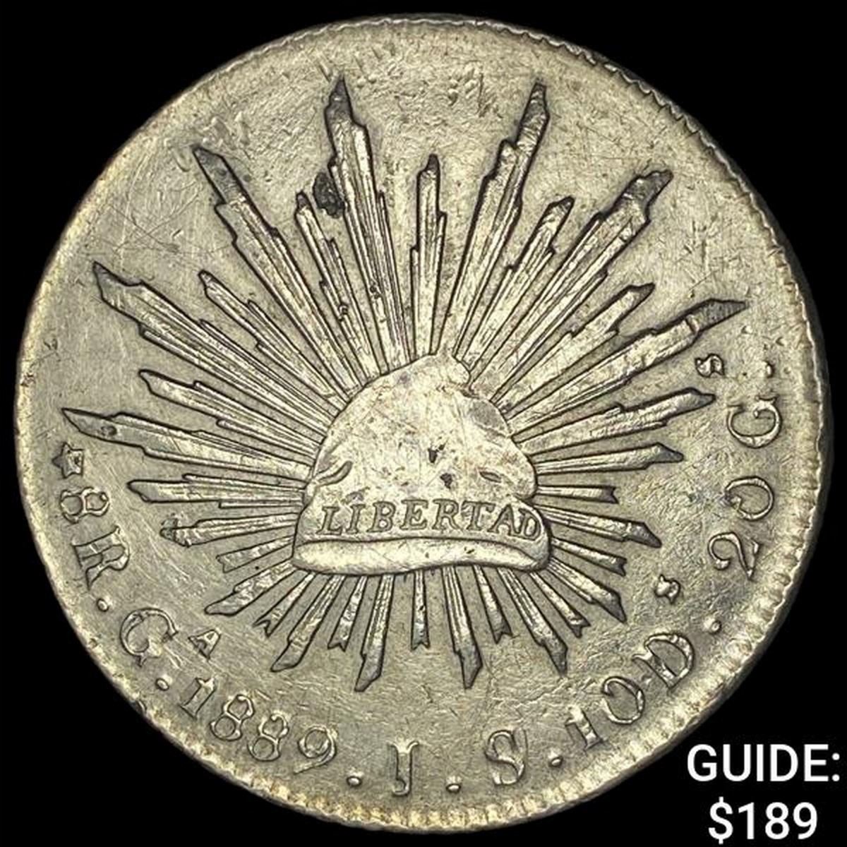 1889Ga DS Mexico Silver 8 Reales Cap & Ray CHOICE AU