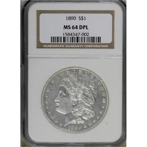 <B>1890 $1 MS64 Deep Mirror Prooflike NGC.</B></I> Crisply struck and carefully preserved, with impressive deep mirror fields and nicely frosted devices. An abrasion on the left side of the eagle's torso and small chatter marks in the fields preclude a finer grade. Census: 35 in 64 Deep Mirror Prooflike, 2 finer (3/08). <BR><BR><b>Shipping:</b> Coins & Currency (<a target="_blank" href="http://www.heritageauctions.com/common/shipping.php">view shipping information</a>)