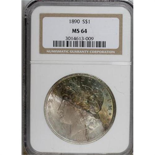 <B>1890 $1 MS64 NGC.</B></I> NGC Census: (3098/231). PCGS Population (2454/322). Mintage: 16,802,590. Numismedia Wsl. Price for NGC/PCGS coin in MS64: $116. (#7196)<BR><BR><B>Coin Engraver:</B> George T. Morgan<BR><BR><b>Shipping:</b> Coins & Currency (<a target="_blank" href="http://www.heritageauctions.com/common/shipping.php">view shipping information</a>)