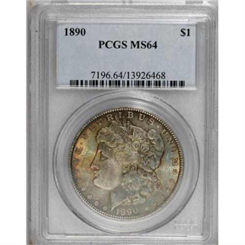<B>1890 $1 MS64 PCGS.</B></I> PCGS Population (2470/329). NGC Census: (3098/231). Mintage: 16,802,590. Numismedia Wsl. Price for NGC/PCGS coin in MS64: $116. (#7196)<BR><BR><B>Coin Engraver:</B> George T. Morgan<BR><BR><b>Shipping:</b> Coins & Currency (<a target="_blank" href="http://www.heritageauctions.com/common/shipping.php">view shipping information</a>)