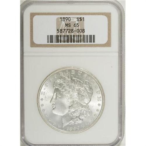 <B>1890 $1 MS65 NGC.</B></I> The 1890 Morgan dollar is surprisingly scarce at the Gem level of preservation, and more than ten times as many pieces have been graded at MS64 than at MS65, by NGC and PCGS combined. This snow-white example is bright, well struck, and nicely preserved, with just a few trivial surface blemishes. <BR><I>From the Reuben Reinstein Collection.</B></I><BR><BR><b>Shipping:</b> Coins & Currency (<a target="_blank" href="http://www.heritageauctions.com/common/shipping.php">view shipping information</a>)