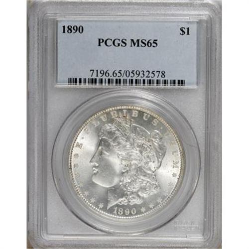 <B>1890 $1 MS65 PCGS.</B></I> Lustrous and nearly brilliant with a good strike and delightfully unabraded surfaces. The 1890 has a mintage, but is confoundedly difficult to locate with exemplary quality. PCGS has certified only two pieces above the MS65 level (5/07).<BR><BR><b>Shipping:</b> Coins & Currency (<a target="_blank" href="http://www.heritageauctions.com/common/shipping.php">view shipping information</a>)