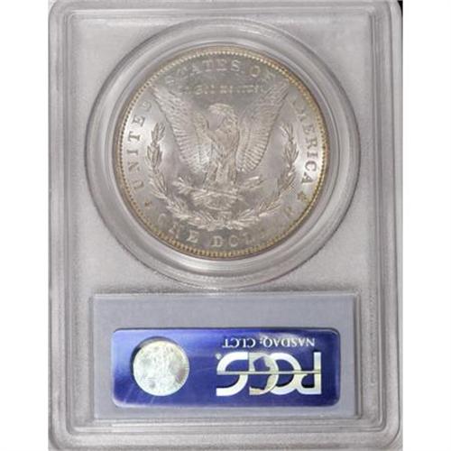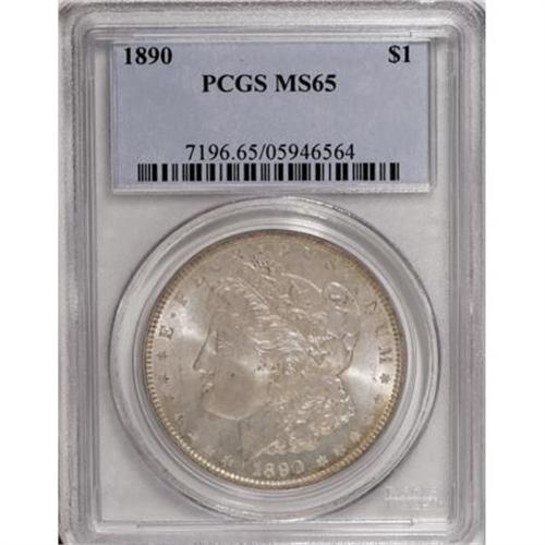 <B>1890 $1 MS65 PCGS.</B></I> According to Bowers: "Most 1890 dollars are poorly struck, from dies spaced too far apart and/or worn beyond their normal useful life, and have indifferent or even poor luster." This Gem example is remarkably well struck for the issue, despite some softness along the obverse peripheries, with creamy luster and ivory-white toning that yields to orange-gold border accents. Carefully preserved and delightful.<BR><I>From The Oxford Collection.</B></I><BR><BR><B>Coin Engraver:</B> George T. Morgan<BR><BR><b>Shipping:</b> Coins & Currency (<a target="_blank" href="http://www.heritageauctions.com/common/shipping.php">view shipping information</a>)