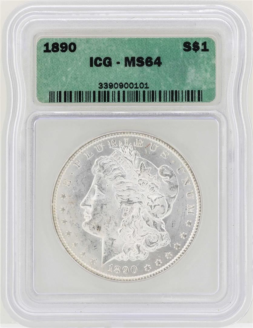 One 1890 $1 Morgan Silver Dollar Coin ICG MS64. ICG Certified.