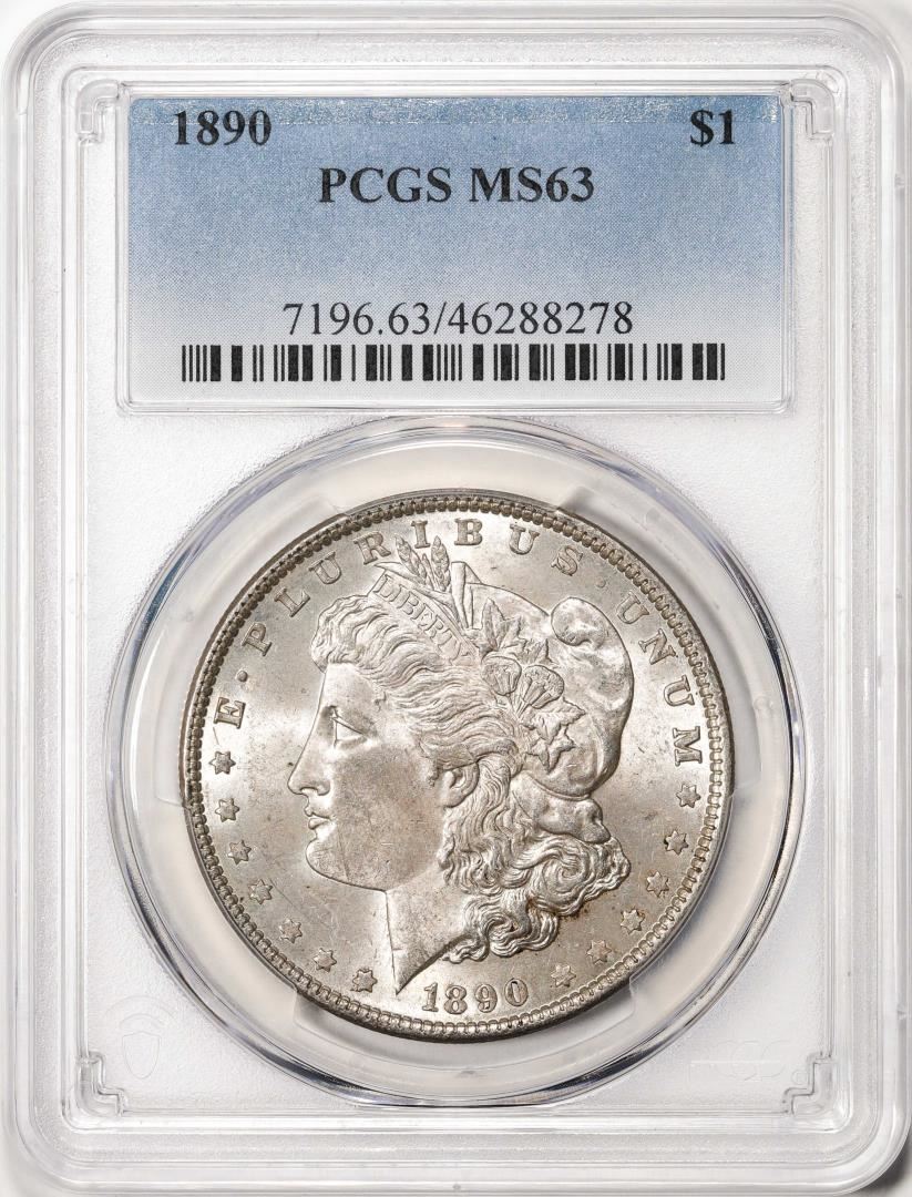 One 1890 $1 Morgan Silver Dollar Coin PCGS MS63. PCGS Graded.