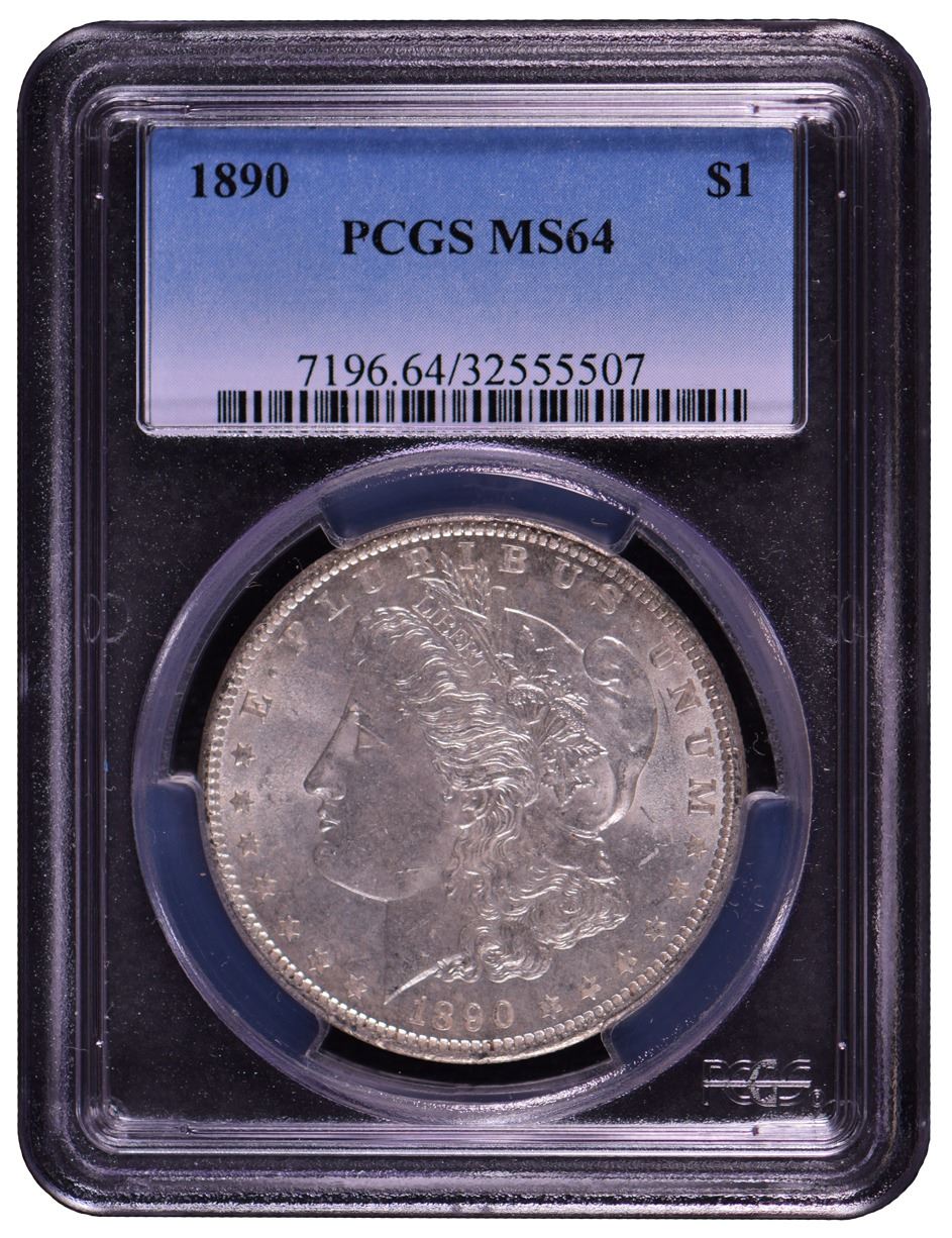 One 1890 $1 Morgan Silver Dollar Coin PCGS MS64.