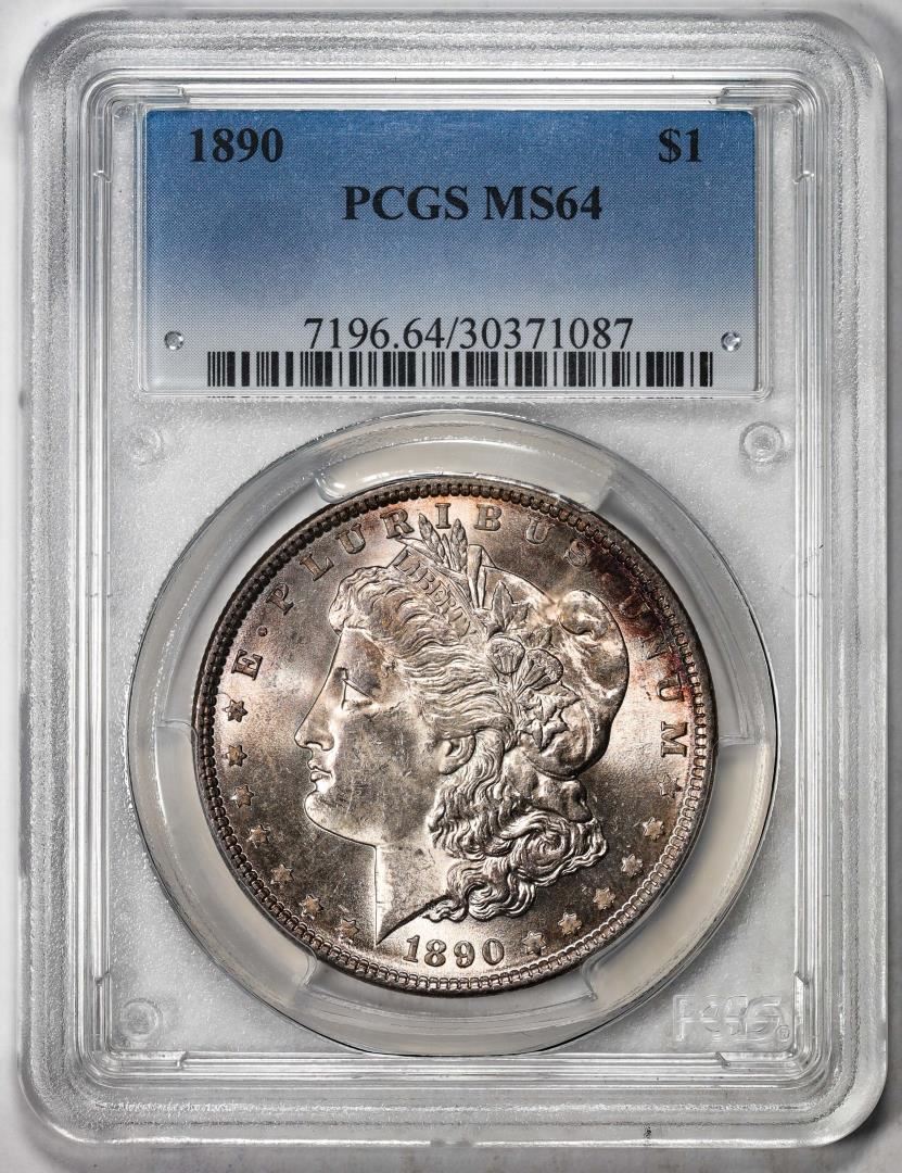 One 1890 $1 Morgan Silver Dollar Coin PCGS MS64. PCGS Graded.