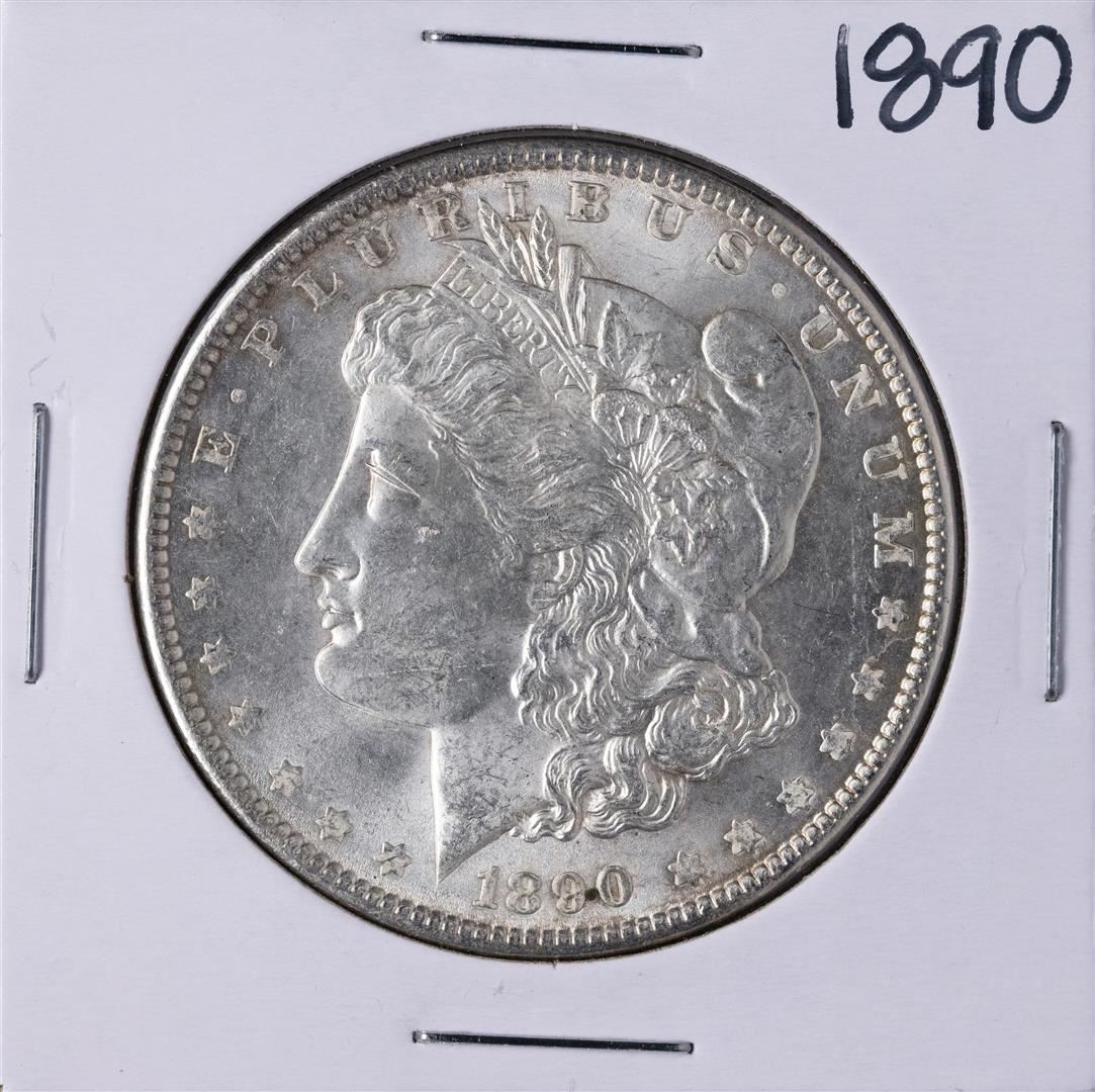 One 1890 $1 Morgan Silver Dollar Coin.