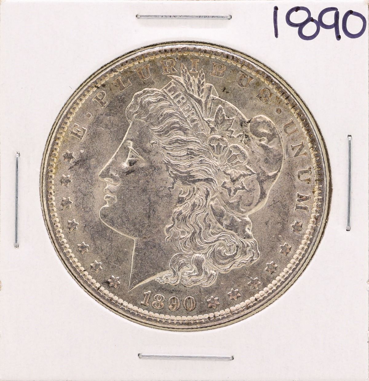 One 1890 $1 Morgan Silver Dollar Coin.