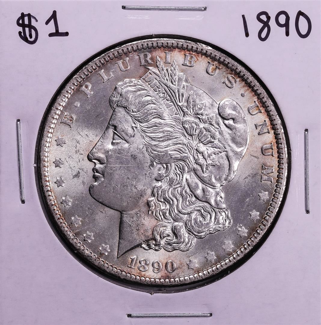One 1890 $1 Morgan Silver Dollar Coin.