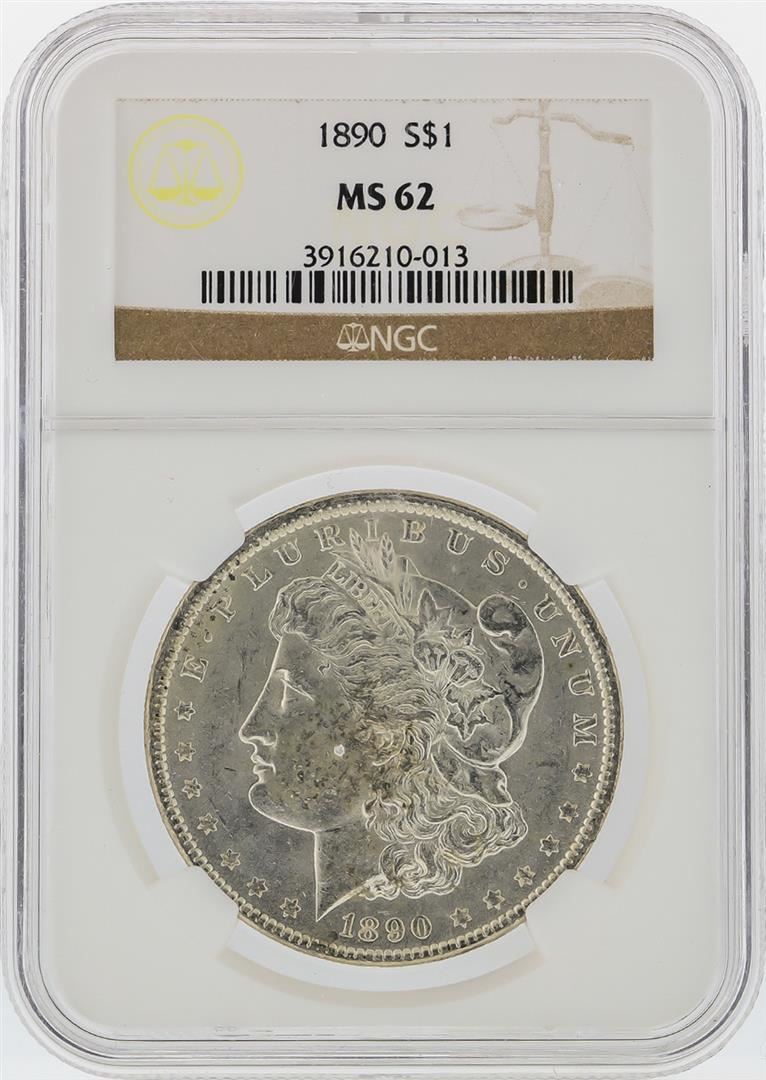 One 1890 $1 Morgan Silver Dollar NGC Graded MS62. NGC Certified.