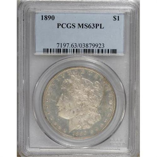 <B>1890 $1 MS63 Prooflike PCGS.</B></I> PCGS Population (64/66). NGC Census: (86/87). Numismedia Wsl. Price for NGC/PCGS coin in MS63: $156. (#7197)<BR><BR><B>Coin Engraver:</B> George T. Morgan<BR><BR><b>Shipping:</b> Coins & Currency (<a target="_blank" href="http://www.heritageauctions.com/common/shipping.php">view shipping information</a>\)