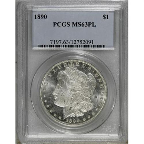 <B>1890 $1 MS63 Prooflike PCGS.</B></I> PCGS Population (70/68). NGC Census: (88/86). Numismedia Wsl. Price for NGC/PCGS coin in MS63: $156. (#7197)<BR><BR><B>Coin Engraver:</B> George T. Morgan<BR><BR><b>Shipping:</b> Coins & Currency (<a target="_blank" href="http://www.heritageauctions.com/common/shipping.php">view shipping information</a>)