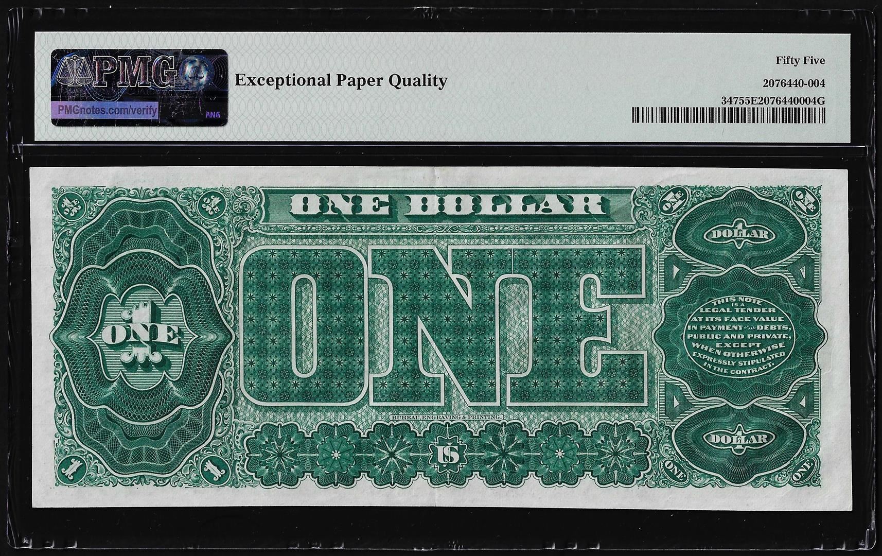One 1890 $1 Treasury Note Fr.347 PMG About Uncirculated 55EPQ. PMG Certified.