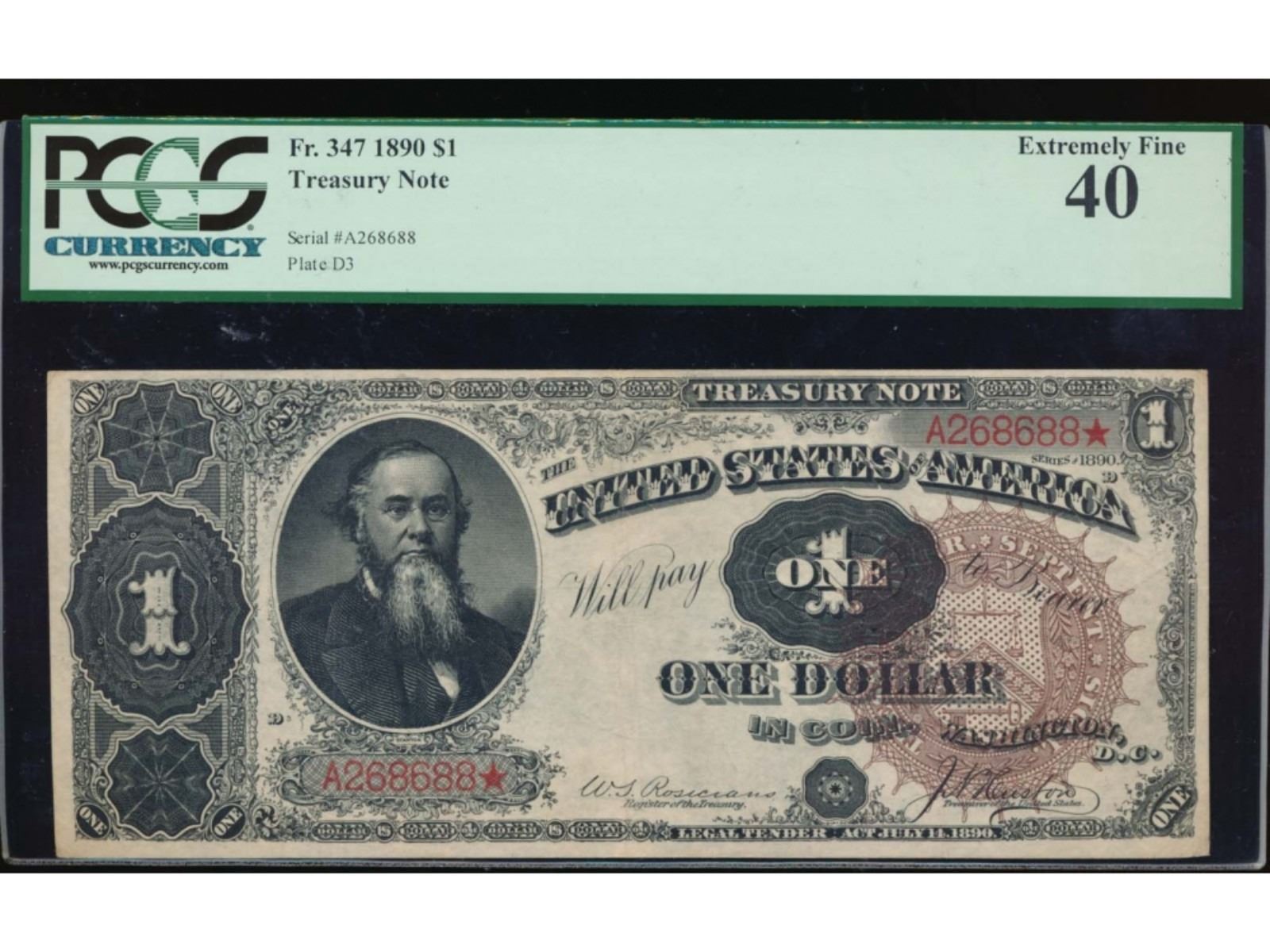 One 1890 $1 Treasury Note PCGS 40.