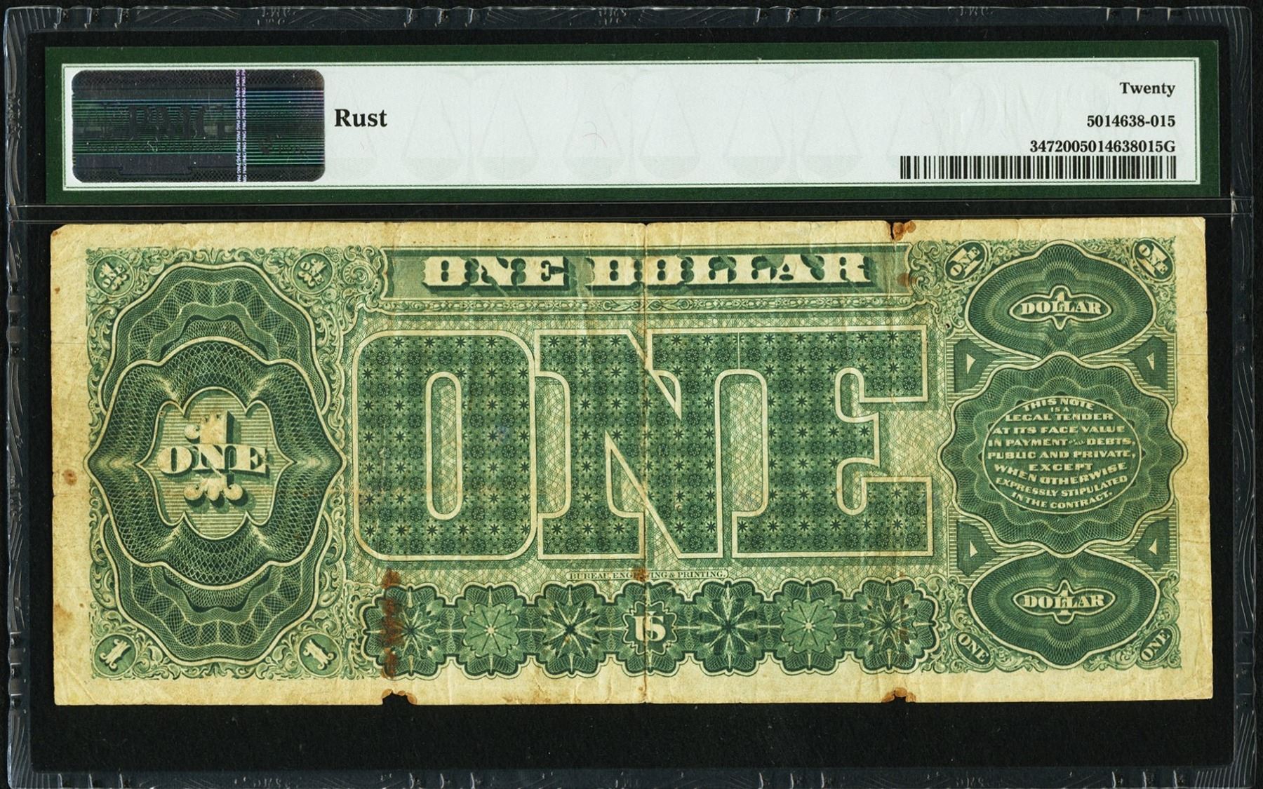 One 1890 $1 Treasury Note PMG 20.