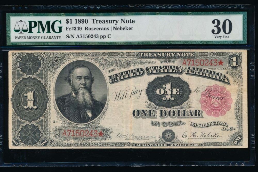 One 1890 $1 Treasury Note PMG 30.