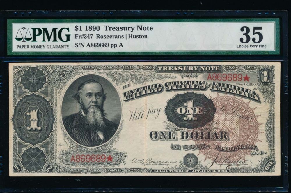 One 1890 $1 Treasury Note PMG 35.