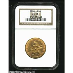 1890 $10 MS62 NGC. Excellent mint luster with a few abrasions scattered about which account for the grade. Important notice: We expect to be auctioning lots at the rate of 200-250 per hour. Sometimes eBay Premier live bid software cannot keep up with that pace, so we strongly recommend that you place a realistic proxy bid now as insurance to avoid disappointment. Also please note that all Heritage/CAA lots purchased through eBay Premier carry a 20% Buyer's Premium. Please make sure you read the Terms and Conditions.