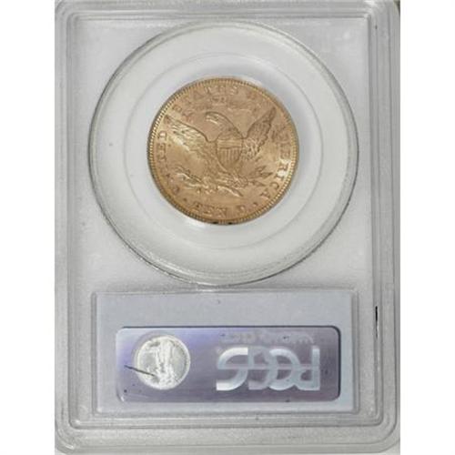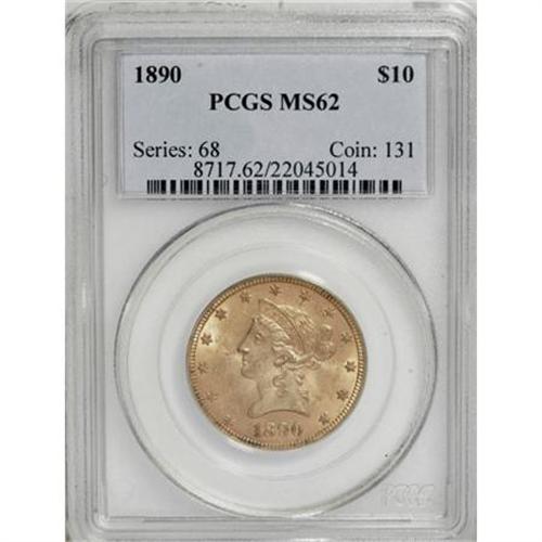<B>1890 $10 MS62 PCGS.</B></I> Excellent definition for this Philadelphia issue with soft, satiny luster. The yellow-orange surfaces show scattered points of alloy and a number of light to moderate abrasions. PCGS has graded 16 finer pieces (11/07).<BR><BR><B>Coin Engraver:</B> Christian Gobrecht<BR><BR><b>Shipping:</b> Coins & Currency (<a target="_blank" href="http://www.heritageauctions.com/common/shipping.php">view shipping information</a>)