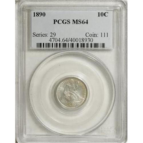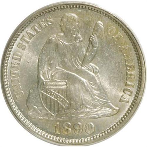 <B>1890 10C MS64 PCGS.</B></I> PCGS Population (120/90). NGC Census: (126/126). Mintage: 9,910,951. Numismedia Wsl. Price for NGC/PCGS coin in MS64: $400. (#4704)<BR><BR><B>Coin Engraver:</B> Christian Gobrecht<BR><BR><b>Shipping:</b> Coins & Currency (<a target="_blank" href="http://www.heritageauctions.com/common/shipping.php">view shipping information</a>)