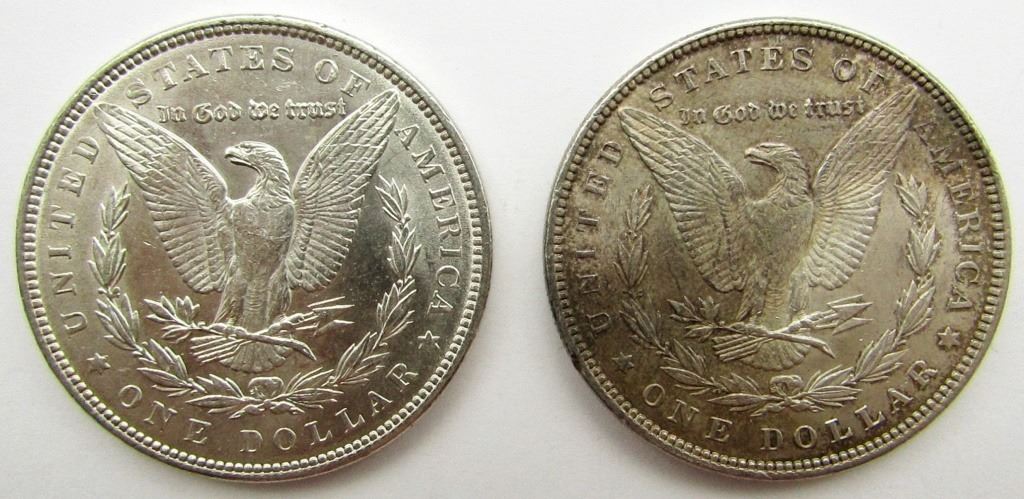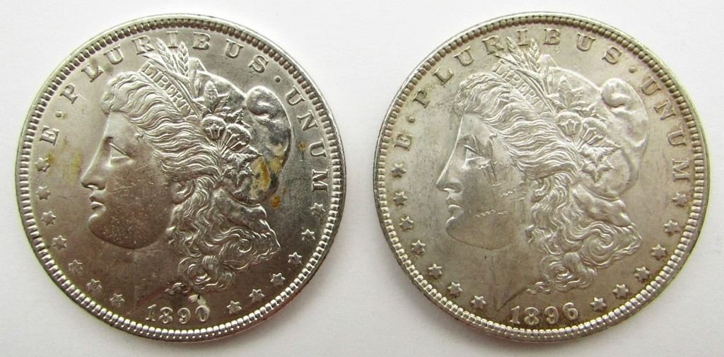 1890 & 1896 AU DETAILS MORGAN DOLLARS