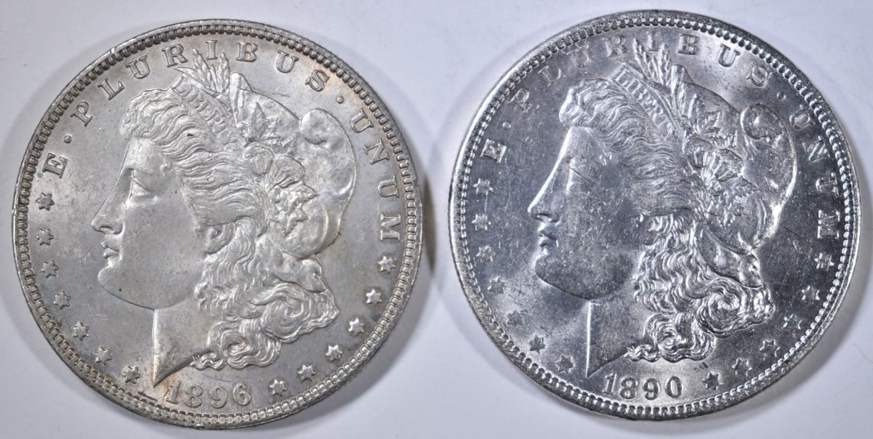 1890 & 1896 MORGAN DOLLARS, CH BU