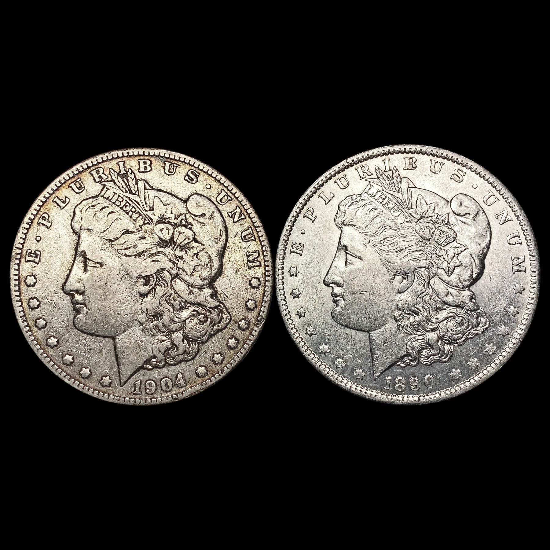 1890 & 1904 [2] Morgan Silver Dollar HIGH GRADE