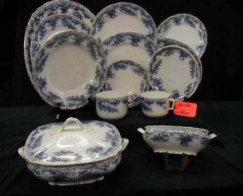 1890-1910 ENGLISH BRIDGEWOOD & SONS PORCELAINE OPAQUE inCLARENCEin 46 PC SET INCLUDES (1) 14inL X 11 1/2inW LARGE PLATTER EXCELLENT, (1) 11 1/2in L X 8 1/2inW PLATTER EXCELLENT, (1) 10 1/4in X 8 1/4in PLATTER, (5) 9in SOUP BOWLS, (10) 9 1/2in DINNER PLATES, (4) 9