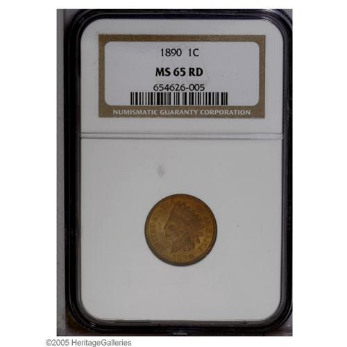 1890 1C MS65 Red NGC. Coppery-gold toning is imbued wi 1890[1C] MS65 Red NGC.