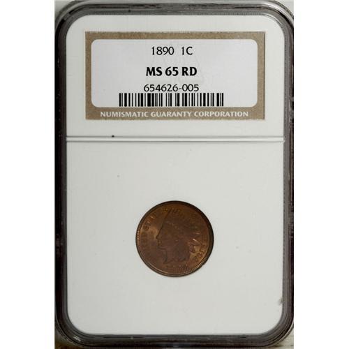 <B>1890 1C MS65 Red NGC.</B></I> NGC Census: (19/0). PCGS Population (41/8). Mintage: 57,182,856. Numismedia Wsl. Price: $950. (#2177)<BR><BR><b>Shipping:</b> Coins & Currency (<a target="_blank" href="http://www.heritageauctions.com/common/shipping.php">view shipping information</a>)