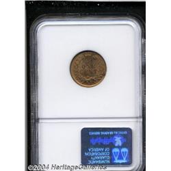 <B>1890<1C> MS65 Red NGC.</B></I> A frosty golden-tan example with tinges of orange patina in the areas surrounding the devices. The strike is well executed and speckles of carbon are a minimal factor on the reverse. Population: 18 in 65, 0 finer (4/04). <BR><BR><B>Important notice:</B> Heritage usually auctions material at the rate of 200-250 lots per hour. On some occasions eBay Live bid software or the Internet may not be able to keep up with the pace of the auction. We recommend placing a realistic absentee bid now as insurance to avoid disappointment. Occasionally the auctioneer may eliminate or reject an eBay Live bid, and the auctioneer may also reopen a lot after the close of the eBay live bidding (usually because we missed an audience bid), and may reject your bid even if it shows you as the winning bidder. By bidding via eBay Live, you agree that Heritage may award the lot to another bidder at its sole discretion under the circumstances described above or any other reasonable circumstances. Since eBay bids are not shown to us until we open the lot on the floor, we treat those bids just like floor bids. In most cases the floor responds before the eBay bid is presented to us, due to Internet lag time, so for consistency we have made it a policy that floor bids are always considered first over tie eBay live bids. Also please note that all Heritage lots purchased through eBay Live carry a 20% Buyer's Premium. Please make sure you read the Terms and Conditions before you bid.