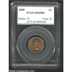 1890 1C MS65 Red PCGS. Even sandy-red coloration and thick luster accent the mark-free, although sli