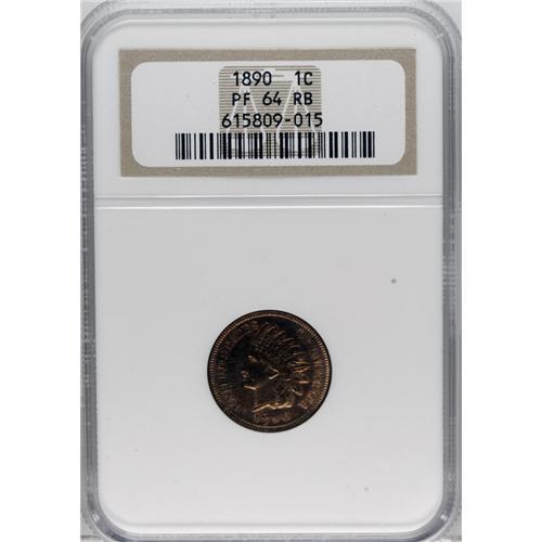 <B>1890 1C PR64 Red and Brown NGC.</B></I> NGC Census: (134/78). PCGS Population (105/22). Mintage: 2,740. Numismedia Wsl. Price for NGC/PCGS coin in PR64: $240. (#2358)<BR><BR><b>Shipping:</b> Coins & Currency (<a target="_blank" href="http://www.heritageauctions.com/common/shipping.php">view shipping information</a>)