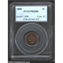 1890 1C PR65 Red and Brown PCGS. An outstanding Gem proof specimen, fully struck with flashy mirrors