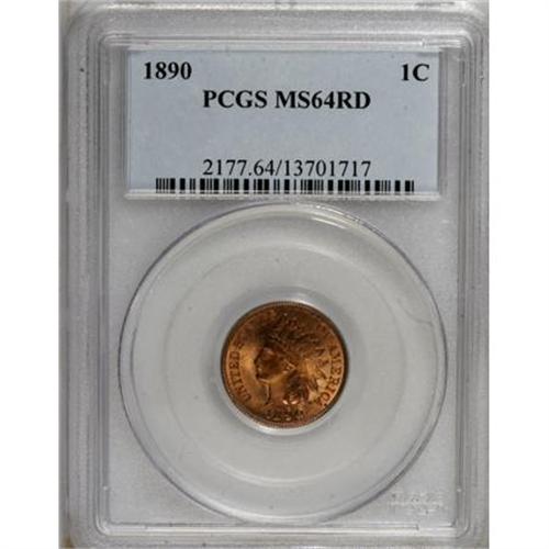 <B>1890 1C MS64 Red PCGS.</B></I> PCGS Population (71/49). NGC Census: (40/21). Mintage: 57,182,856. Numismedia Wsl. Price for NGC/PCGS coin in MS64: $320. (#2177)<BR><BR><B>Coin Engraver:</B> James B. Longacre<BR><BR><b>Shipping:</b> Coins & Currency (<a target="_blank" href="http://www.heritageauctions.com/common/shipping.php">view shipping information</a>)