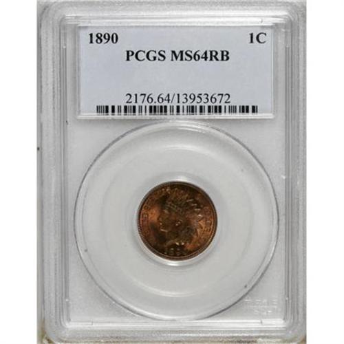<B>1890 1C MS64 Red and Brown PCGS.</B></I> PCGS Population (132/21). NGC Census: (165/70). Mintage: 57,182,856. Numismedia Wsl. Price for NGC/PCGS coin in MS64: $165. (#2176)<BR><BR><B>Coin Engraver:</B> James B. Longacre<BR><BR><b>Shipping:</b> Coins & Currency (<a target="_blank" href="http://www.heritageauctions.com/common/shipping.php">view shipping information</a>)