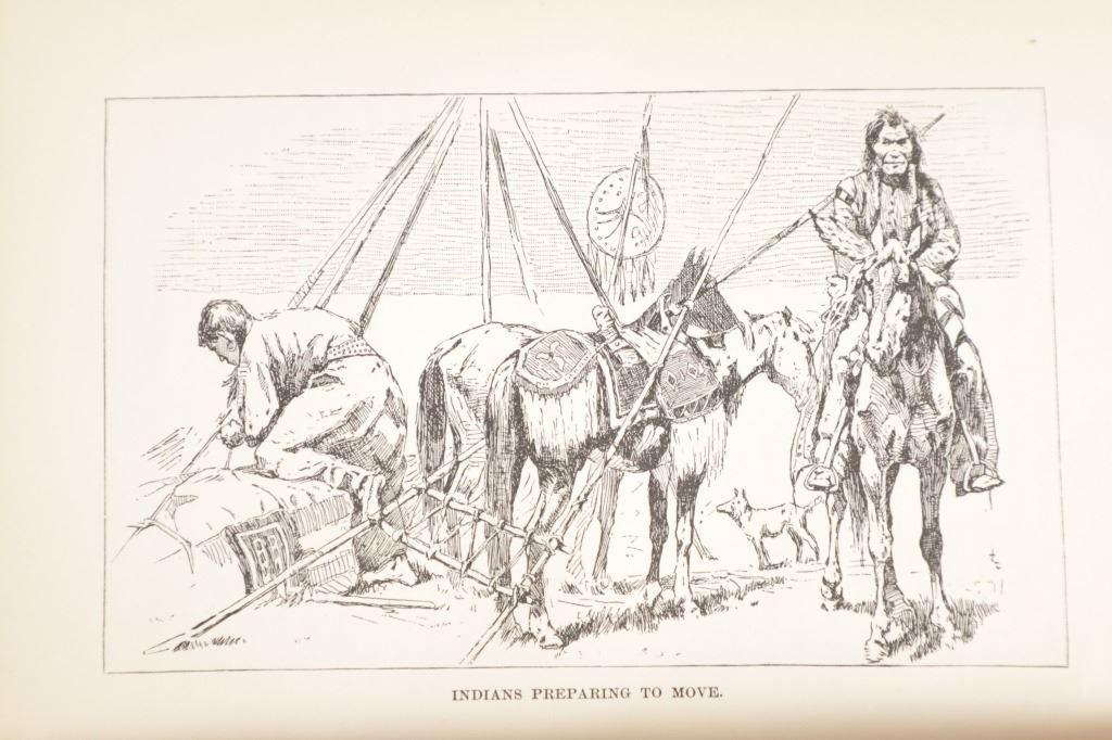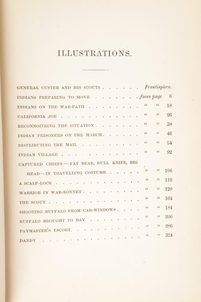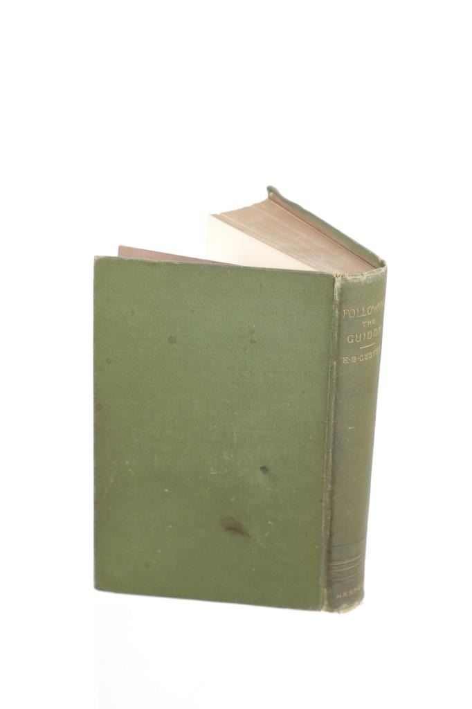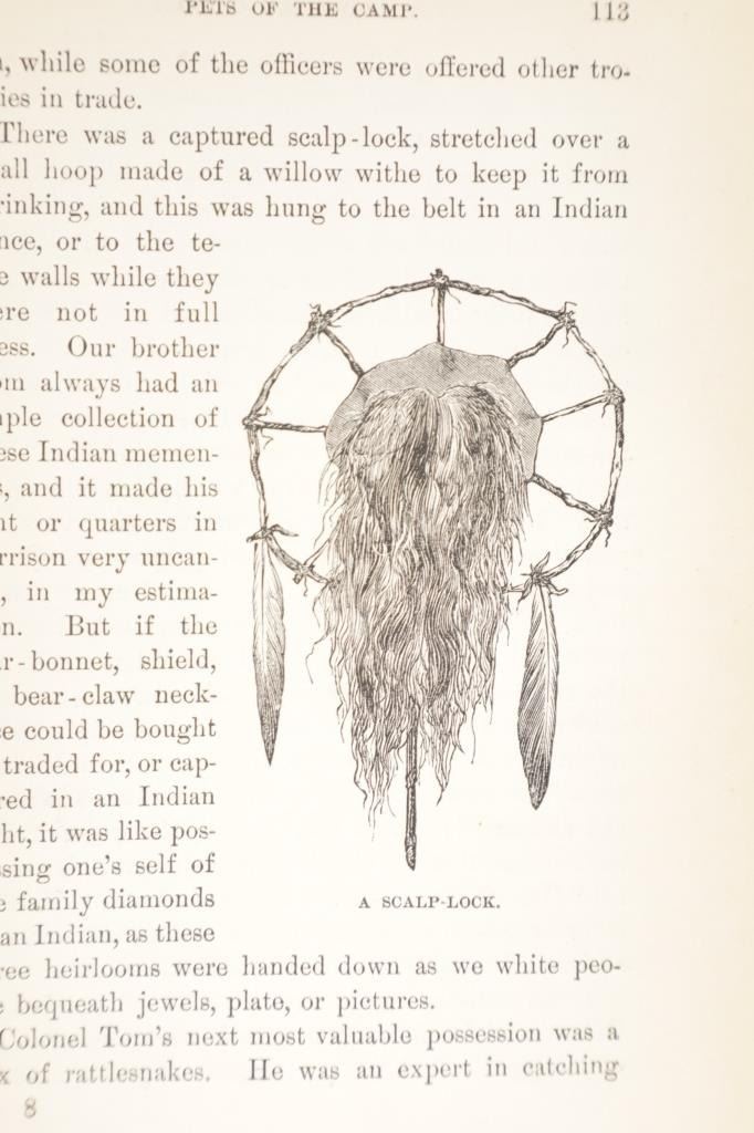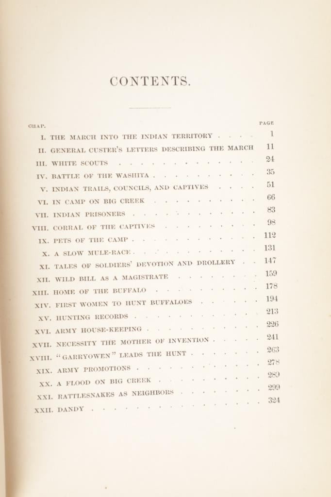 For your consideration is this First Edition of "Following the Guidon" by Elizabeth Custer, published in 1890, Harper & Brothers. The book provides a riveting account of Army life on the Western Frontier during the mid to late 1800's as told by Elizabeth Custer who was the devoted and faithful wife of General George Armstrong Custer. She wrote this book with the attempt of creating a legacy for her husband, General George Custer. She succeeded. In fact, she is without a doubt the most important force in creating a sense of legend around her late husband. She turned him into a Western hero and martyr, which slightly differs from the truth in his military failures, mainly at the Battle of Little Big Horn. This work includes a description of the march into Indian Territory, dealing with scouts, the Battle of the Washita, Indian prisoners and trials, hunting records, army housekeeping, Indian captivity of white women, and more. This original first edition displays a stamped green cloth hardcover with gold gilt lettering "FOLLOWING THE GUIDON" with a spear holding two guidon flags above and two crossed shells below. The book shows nice condition overall, age tanning and slight foxing exhibited throughout intact pages. Measures 5.25"W x 7.5"L x 1"D, weight is 1lb, 2oz.