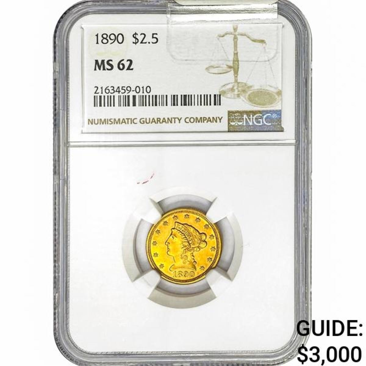 1890 $2.50 Gold Quarter Eagle NGC MS62